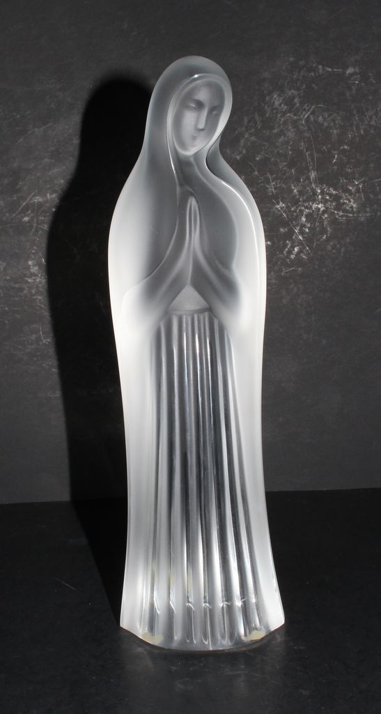 Elegant lalique glass figure of praying Madonna. Lalique Paris label 1201900; 10" h.