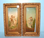 Pair of Victorian oil on board paintings of couples; 8 1/2" w., 15" h.