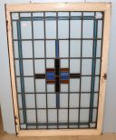 629 Antique Prairie School Style Blue and Gold Geometric Stain, Leaded Glass Window
