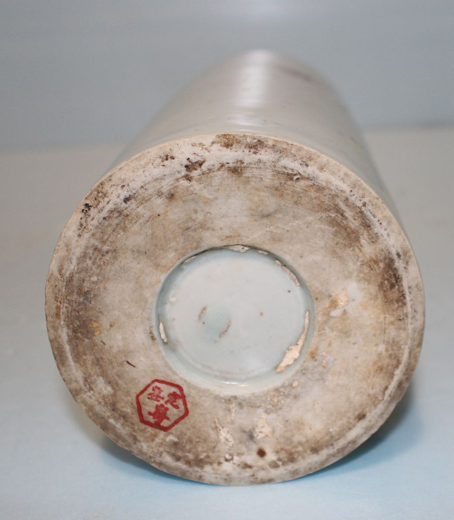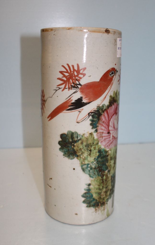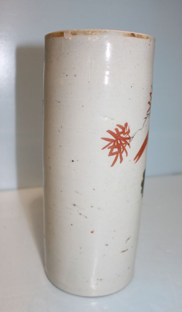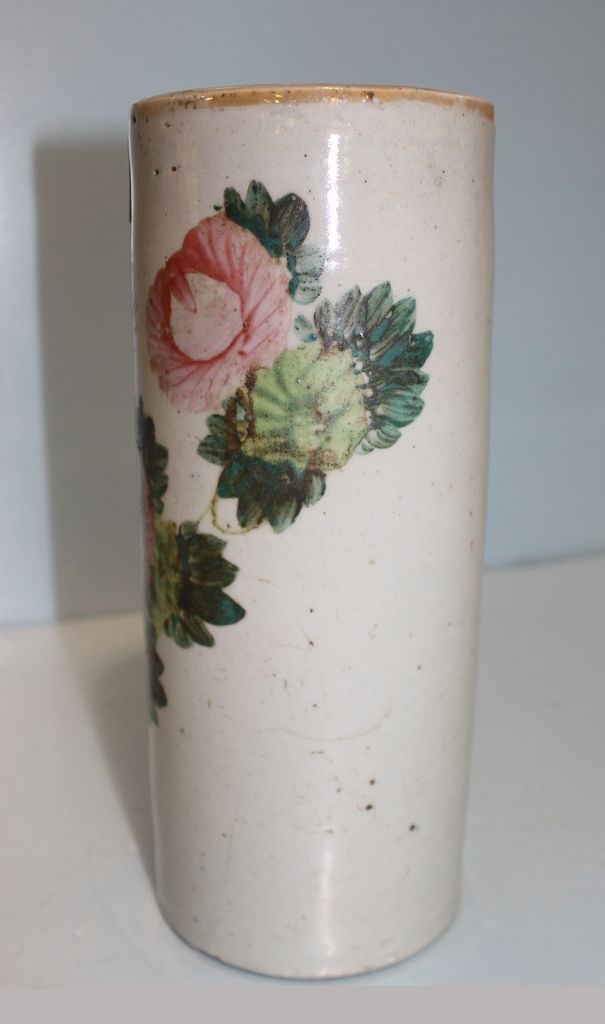 Circa 1900 porcelain hand painted Chinese wig stand; 4 1/2" dia., 11" h.