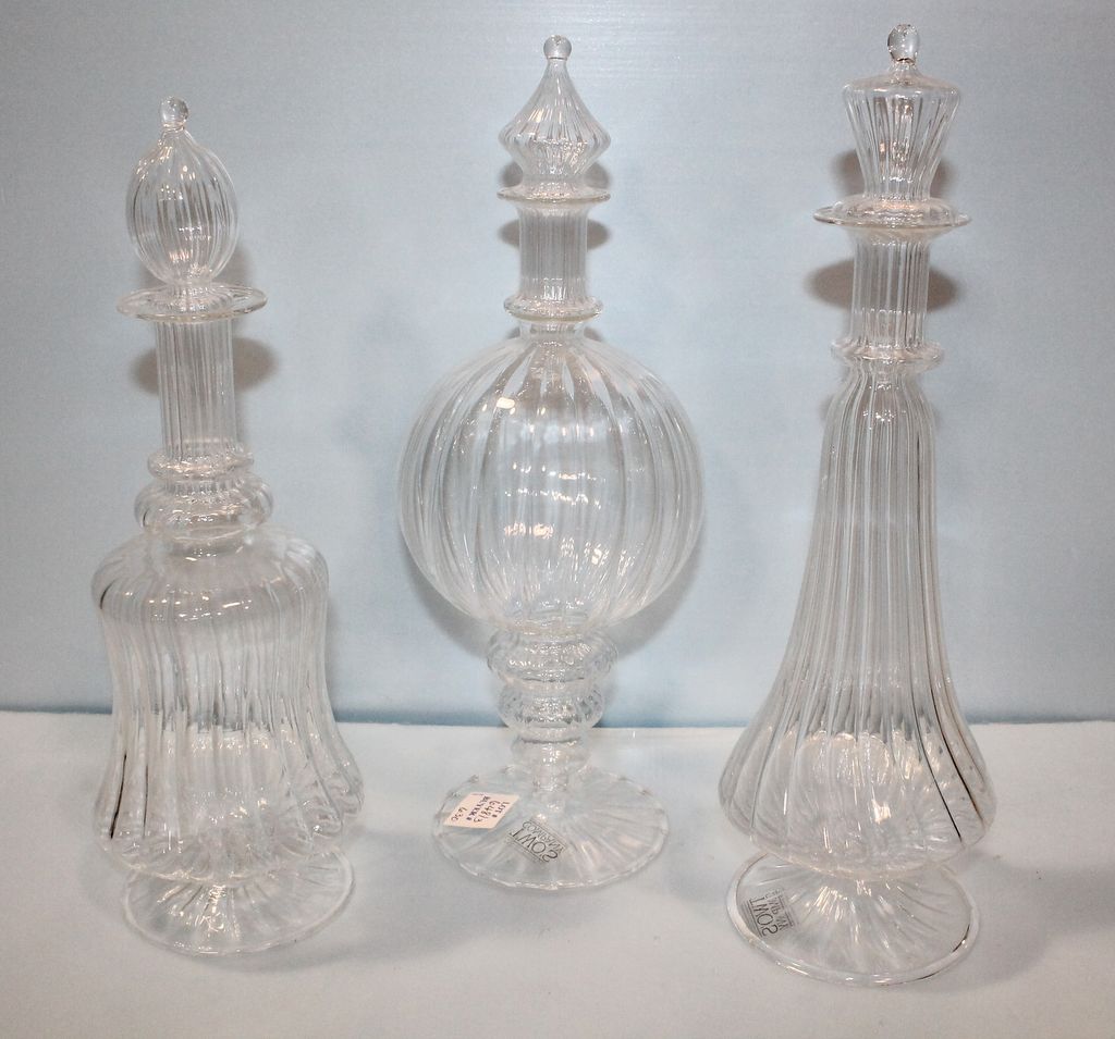 Three contemporary two company decanters; 14''h.