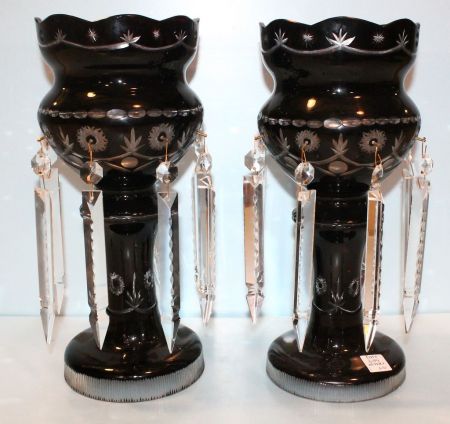 649 Pair of Dark Ruby Glass Lusters