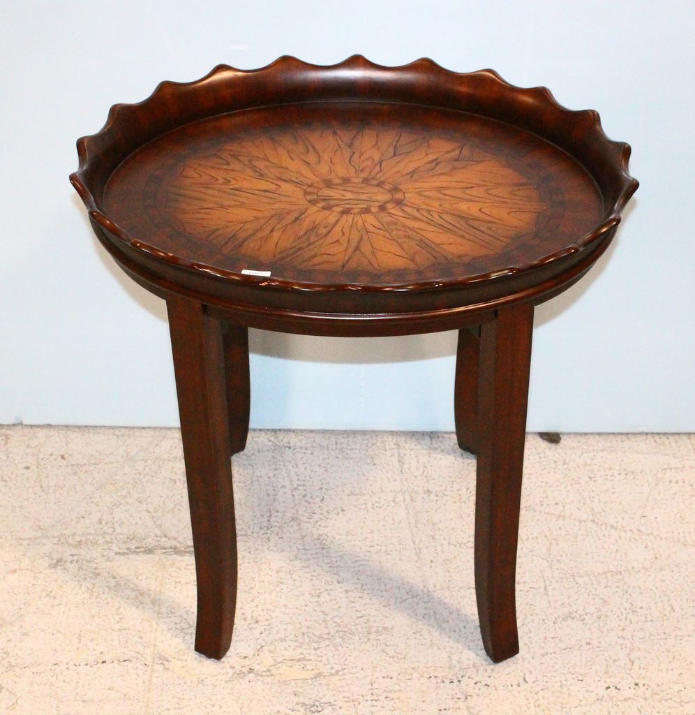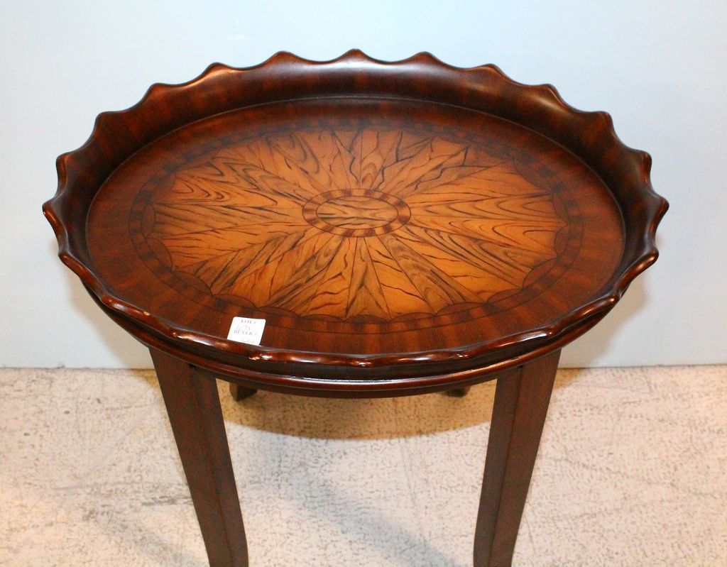 Hand painted oval side table. Top has fancy hepplewhite style medallion; 20''w., 16''d., 20''h.