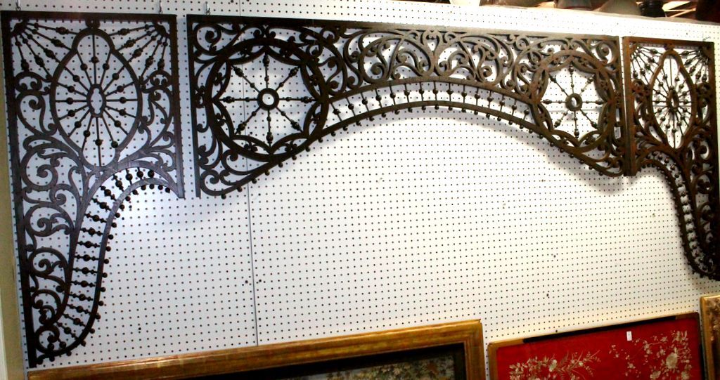 Three gingerbread oak Victorian carved transom; 113" w., 44" h.