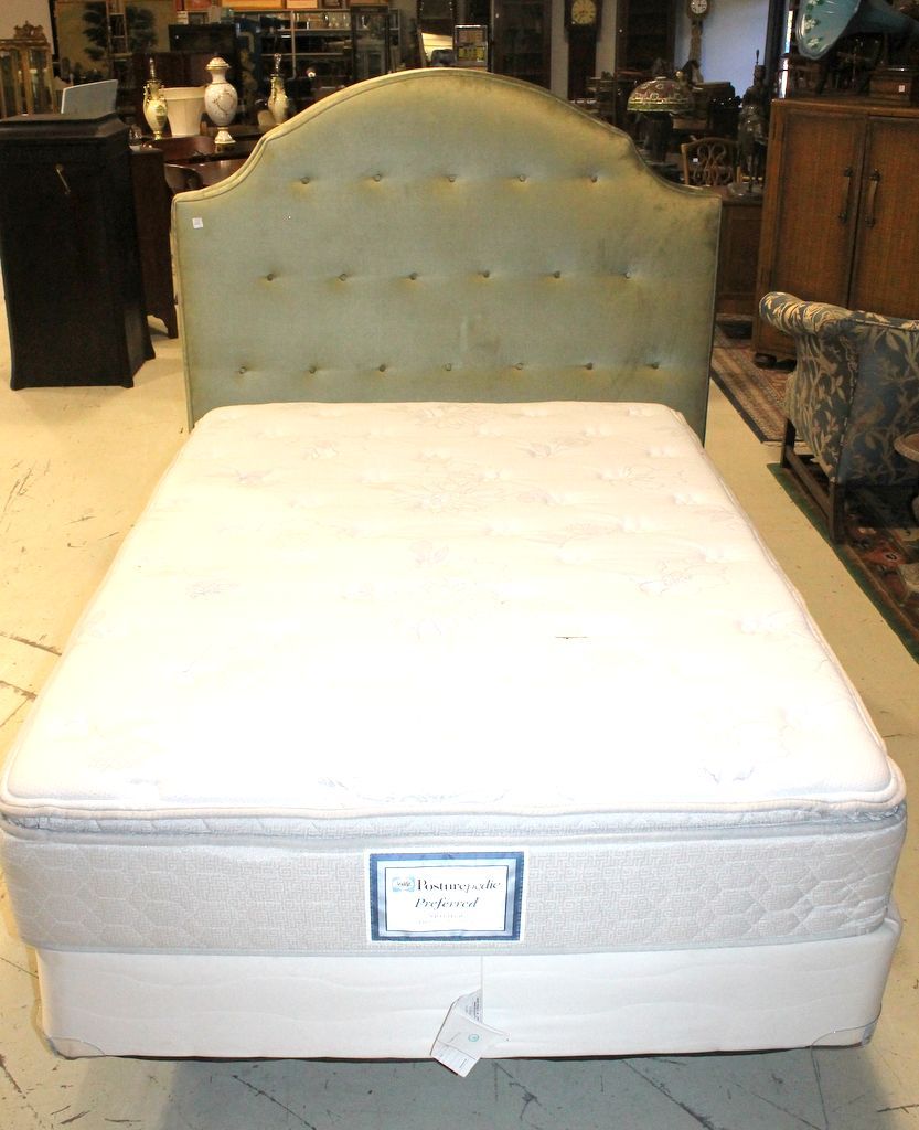 Green velvet tufted headboard with frame, full size. Mattress and bedding not included. 60''h.