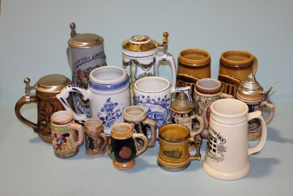 Early Hummel Figurine with "Double Crown" Mark and Other Misc. Items Description: Early Hummel Figurine of boy with ladder marked with a Double Crown on bottom and Group of Miscellaneous Items; wood shoe form, horse head bookends, metal plate, grou