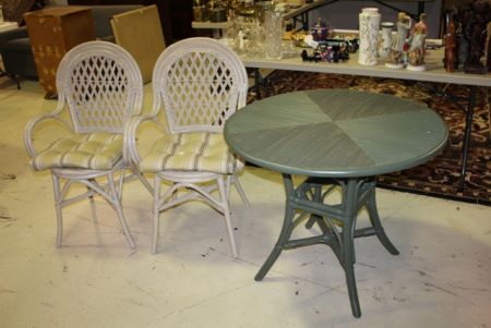 1544 Three Piece Patio Set Description: Three Piece Patio Set; two chairs and round table. Table is 35" w. x 29 1/2" h.