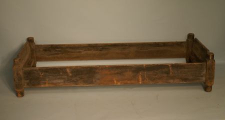 Primitive Single Bed, with rails attached, third or fourth quarter 19th century, with shaped posts. We've seen these in the movies but never in person. W. 26-5/8", h. 13-1/2", l. 67"