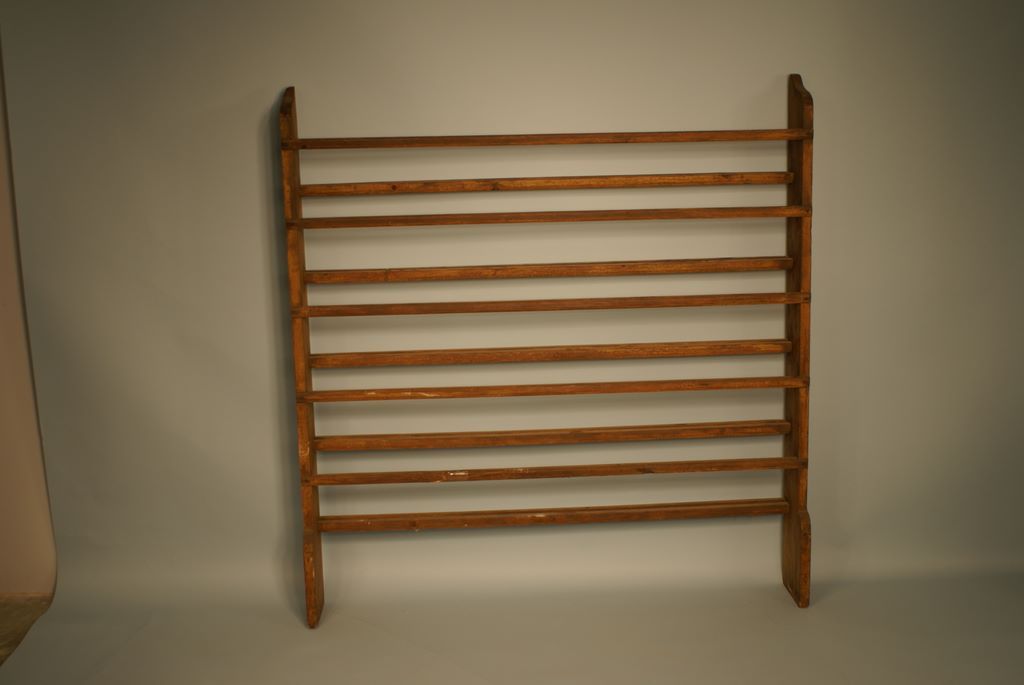 Hanging Plate Rack from New England, last quarter 19th Century, with five plate shelves, pegged and in pine. w. 49" h. 51"