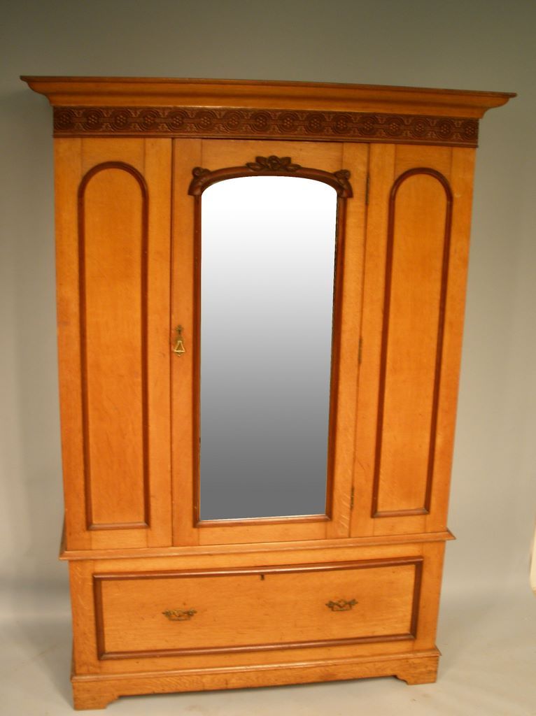 Super Oak Wardrobe with mirrored door with drawer under, mixed wood of oak, walnut and chestnut. W. 49", d. 19-1/4", h. 79-1/2"