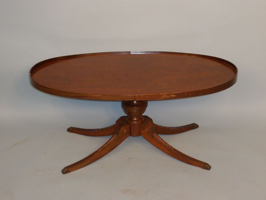 Mahogany Coffee Table, in oval design, with brass claw feet, second quarter 20th Century. w. 36", d. 17-1/2", h. 16"