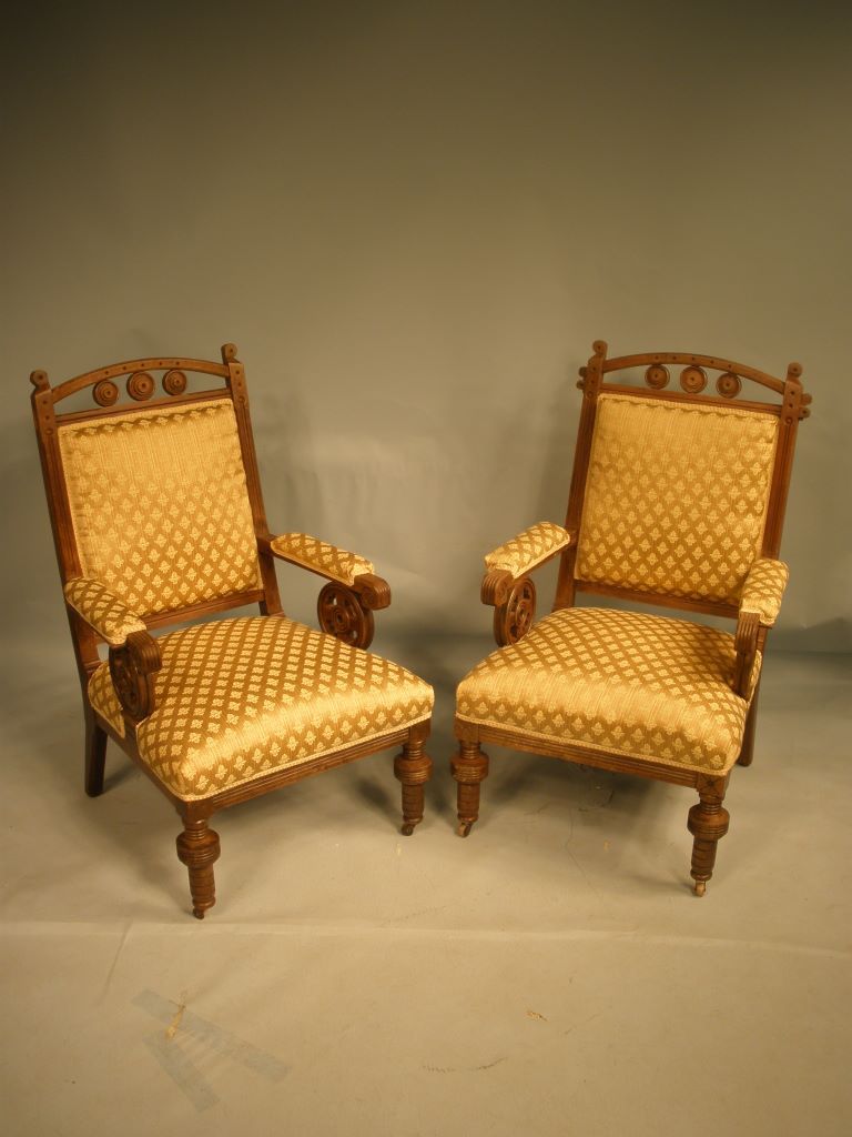 5136 Vice Fine Pair of Walnut Eastlake Upholstered Arm
