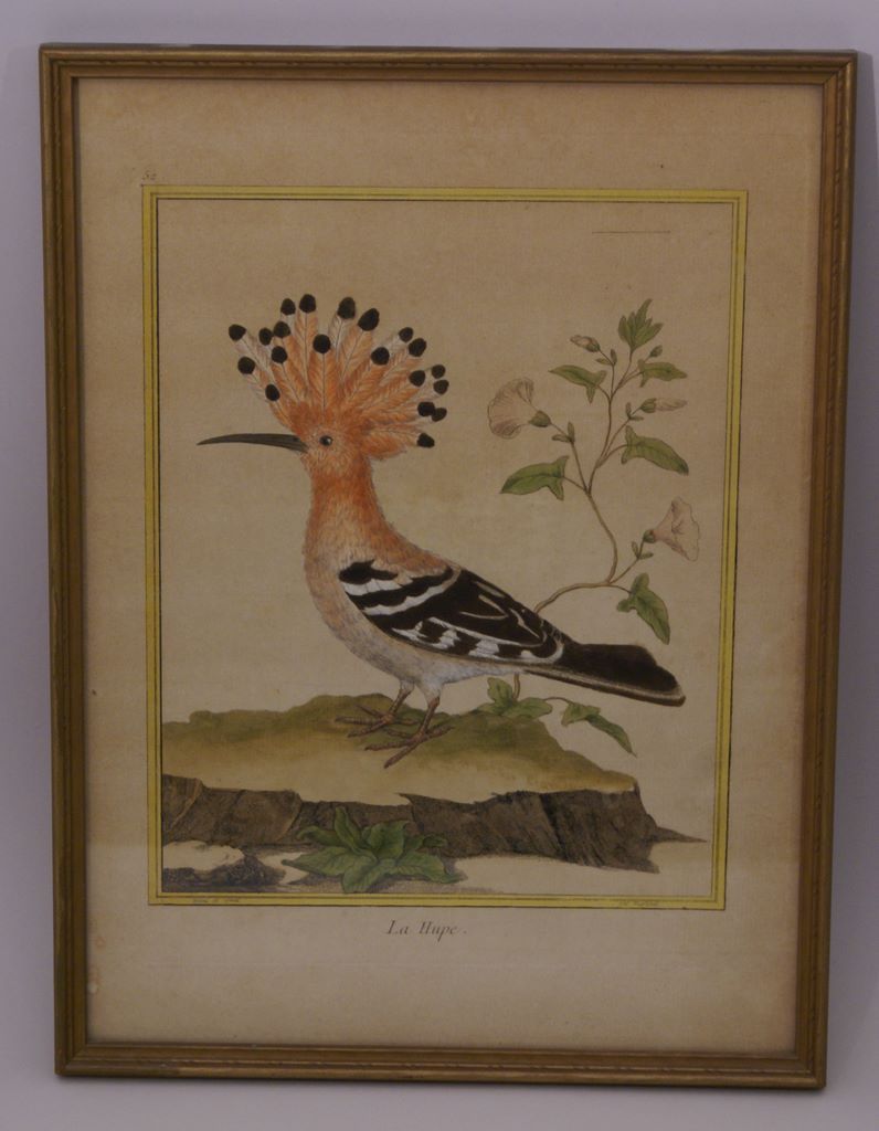 Delightful print of a Hoopoe Bird which is a native to Middle East and India by French Artist Francois Nicolas Martinet. Printed 1771-1786. Martinet engraved illustrations of birds for books by some of the most influential omithologists in 18th cen