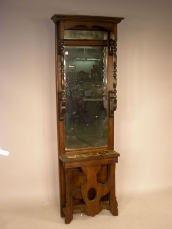 Unusual Hall Tree, with mirror and tile. 78 1/2 h 22 1/2 w 8 d