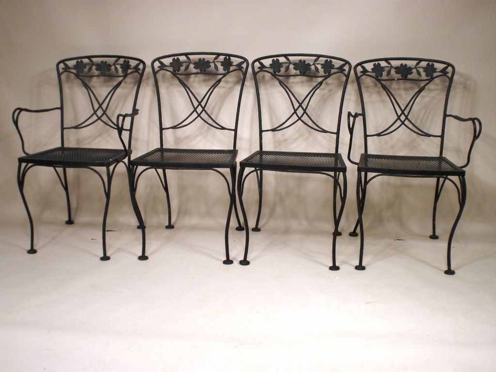 Four Decorative Iron Patio Chairs, 33 h 20 w