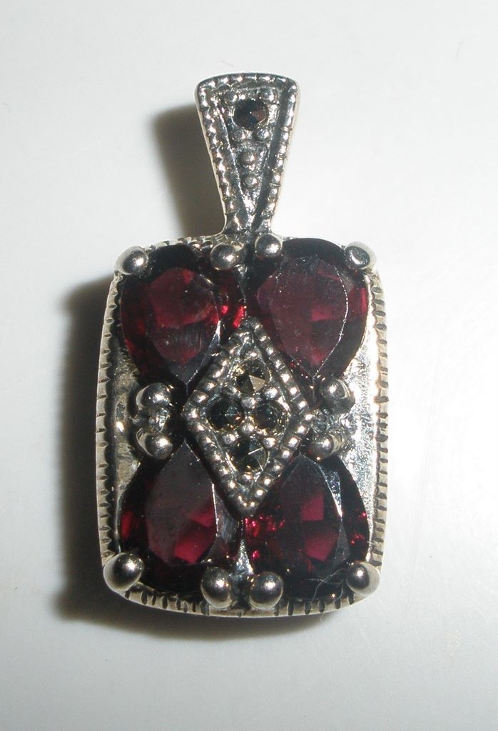 Pretty Silver Marcasite Pendant Mounted with 4 Ruby Colored Stones