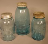 5325 Collection of Three Blue Fruit Jars w/ lids