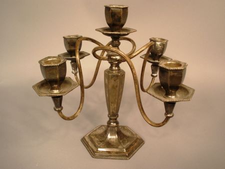 Silver plate Candelabra 5 light by Poole Silver Company, Mass., 12"h x 14 1/2"w
