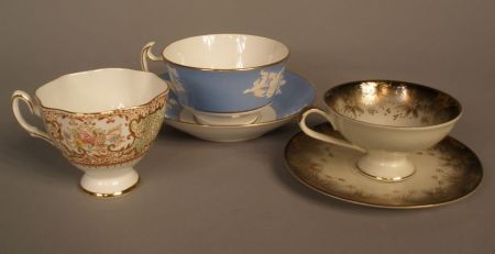 Collection of Three Porcelain Cups and Two Saucers, Alka Bavaria Cup and Saucer, cup 4 1/2" round; England Salisbury Cup 3" x 3 1/2"; Spode Copeland Cup and Saucer 4 1/2"