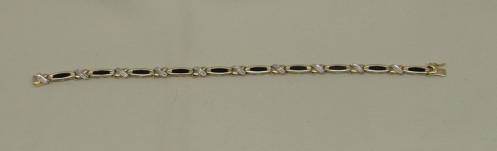 2020 One stamped 10KT yellow gold lady's cast synthetic sapphire and diamond bracelet One stamped 10KT yellow gold lady's cast synthetic sapphire and diamond bracelet with a 14k hidden clasp with a bright polish finish. Containing: Five channel set b