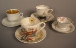 Collection of 4 Cups and Saucers. Bavarian cup 2" & saucer 3", marked Rosenthal; Bareuther demitasse cup 2" & saucer 4 1/2"; Copeland Spode Cup 3" and Saucer 4 1/2"; Royal Staffordshire Cup 2 1/2" & Saucer 5"