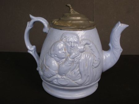 English pottery teapot w/pewter top Circa 1860, 6"h