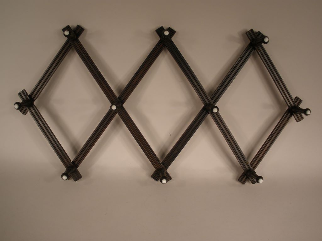 Hat Rack. Black wood hat rack w/porcelain knobs. Not reproduction. 18"