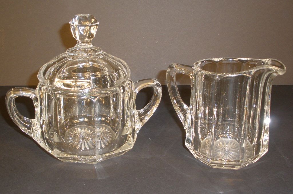 c1920 Heisey Panel Crystal Creamer, 4 1/2" and Sugar, 6"