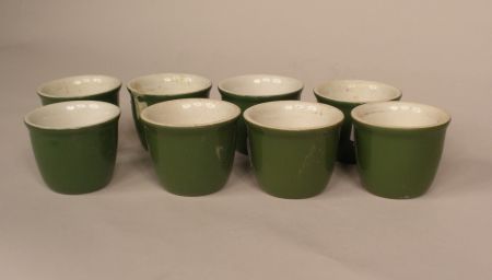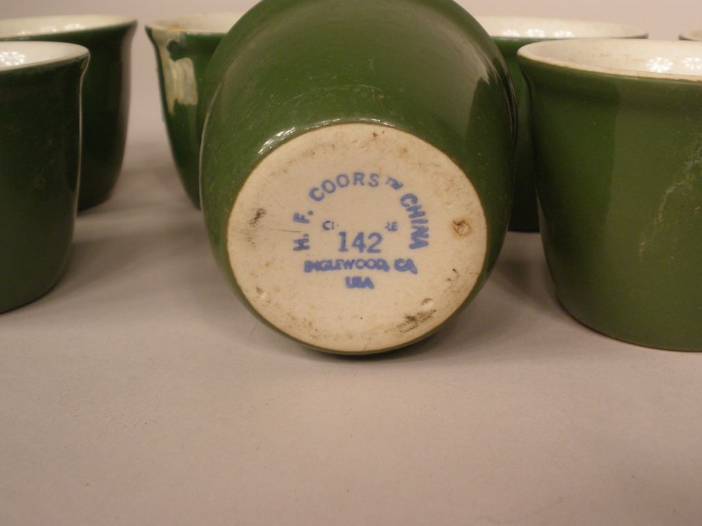 Green Coors Custard Cups (8), H.F. Coors China. Inglewood, Ca #142