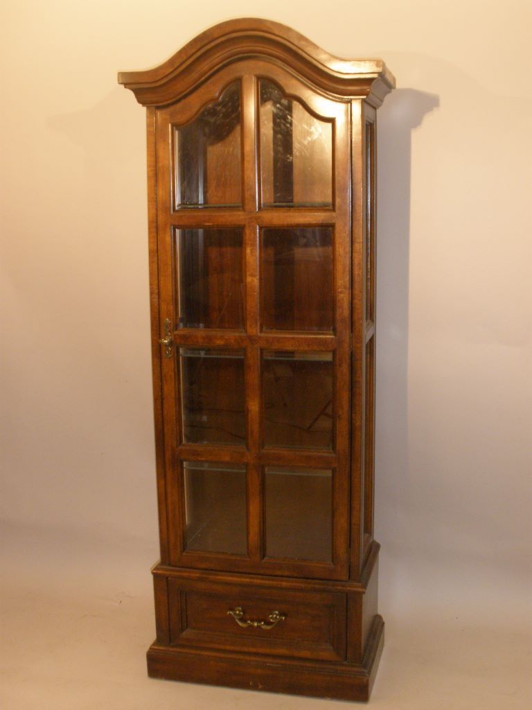 Nice Single Door Lighted Display Case, with drawer at bottom, 72"h x 12 1/2" d x 22 1/2" w.