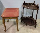 Table- 17" w., 21" d., 23" h.; Etegere- 23" w., 16" d., 31" h.