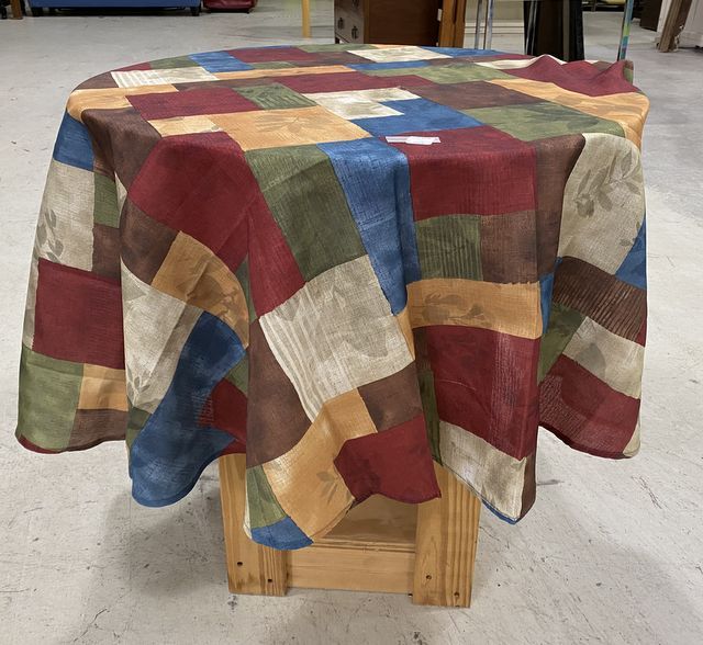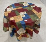 Hand Made Wood Lamp Round Table, fabric cover, 30"h., 29"dia.