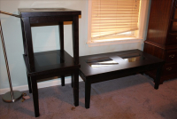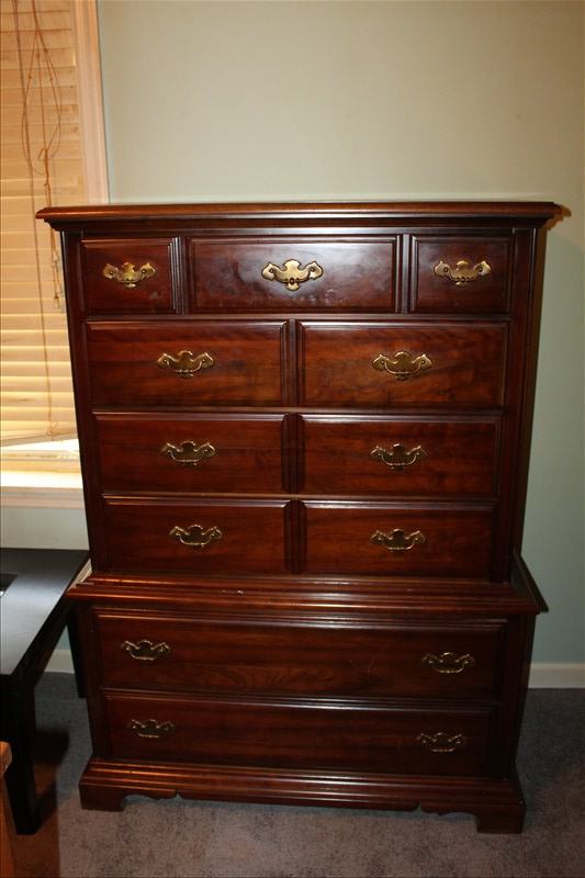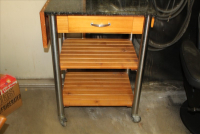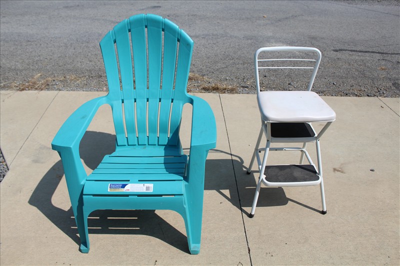 Household, Furniture & Misc: Coffee Table & 2 End Stands W/ Glass Inserts, MCM Glass Display Cabinet, Wheeled Butcher Block Island Cart, Marble Topped Kitchen Island, Tan Office Chair, 4 Drawer Metal File Cabinet, Day Bed, Kitchen Table W/ Leafs & 4 Chairs, American Drew Inc Dresser Set: 9 Drawer Chest w/ Mirror, 2 Night Stands, 3 Over 6 Drawer Dresser; Nordic Track Electronic Treadmill, Small Coleman Tent & Camping Set, Cleaning Products, Light Bulbs, Linens, Kitchen Utensils, Bissell Little Green Spot Cleaner, Bowflex Workout Machine, Oreck Floor Steamer, Whirlpool Gas Stove, Crock Pot, VisionWare, Comfort Adirondack, Step Stool Seat, Gas Cans, Window Air Conditioners, Renpho Foot Massager, & Yard Tools.